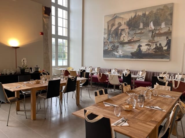 Das Restaurant wurde 2022 nach der Renovierung des Restaurantbereichs des Schlosses eröffnet und ist Teil eines Konzepts zur Aufwertung des architektonischen und kulinarischen Erbes. Das von der napoleonischen Epoche inspirierte Dekor, die zeitgenössischen Möbel, Farben und Leuchten setzen auf Eleganz in Harmonie mit der Geschichte des Ortes. Zwei angelegte Terrassen bieten einen atemberaubenden Blick auf die Gärten und den Étang aux Carpes (Karpfenteich).